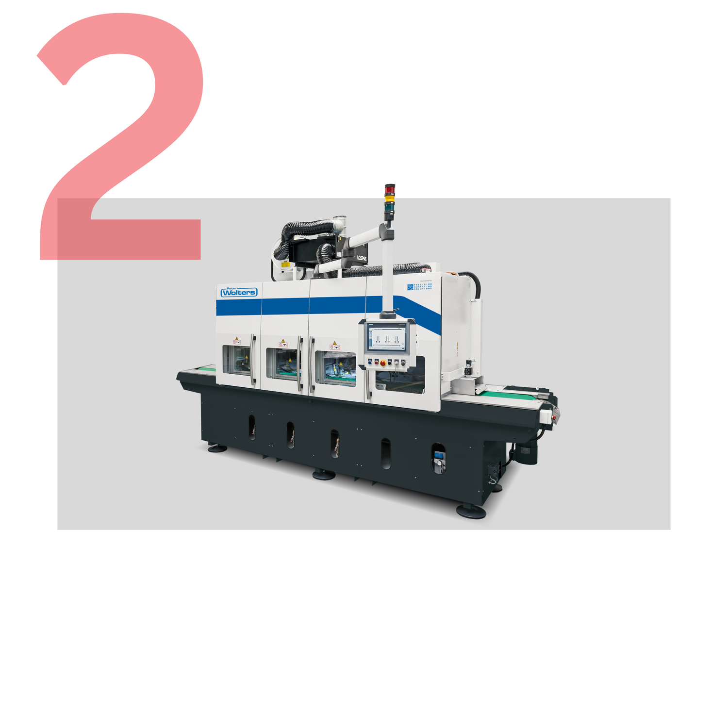 Automatic deburring process involving belt and rotary deburr technology. Belt sanding to refine surface layers for a clean finish. Orbital rotational drum sanding for edge rounding and safety. Final planing belt operation for consistent and professional-looking parts.